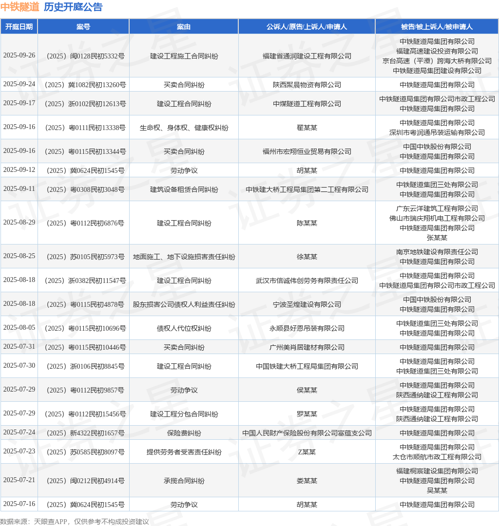 尊龙凯时,尊龙凯时人生就是博z6com,水利水电证券之星消息,根据天眼查APP显示,近日公布了一则中铁隧道局集团有限公司作为被告/被上诉人的开庭公告,详细内容如下: 根据统计,近...